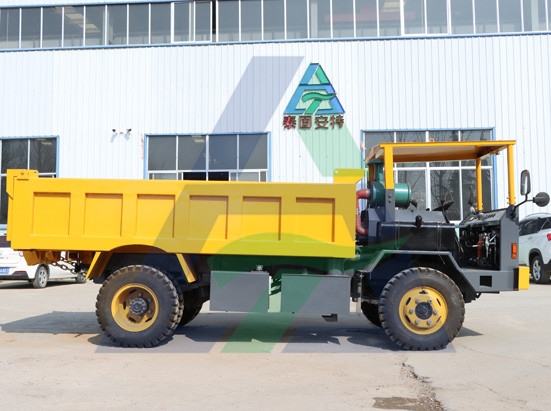 本車型是為適應(yīng)以平巷為主,巷道窄,高度較矮的礦井設(shè)計(jì)的,整體車架,前后橋驅(qū)動(dòng),前輪轉(zhuǎn)向。選用帶副檔變速箱,配玉柴4102發(fā)動(dòng)機(jī);變速幅度大,抵擋大扭矩大牽引力,速度高節(jié)省時(shí)間。加裝水過濾有效降低排放。 采用氣助力離合裝置,輕松有效可靠;液壓助力轉(zhuǎn)向裝置,操輕松靈便;雙油缸自卸裝置,平穩(wěn)高壽命;井下運(yùn)礦車專用板簧,耐用可靠。